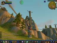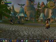 Arrivée au niveau 1 de Thunder Bluff par l'ascenseur sud-ouest. Le grand totem est l'escalier en colimaçon central qui relie les trois niveaux entre eux.